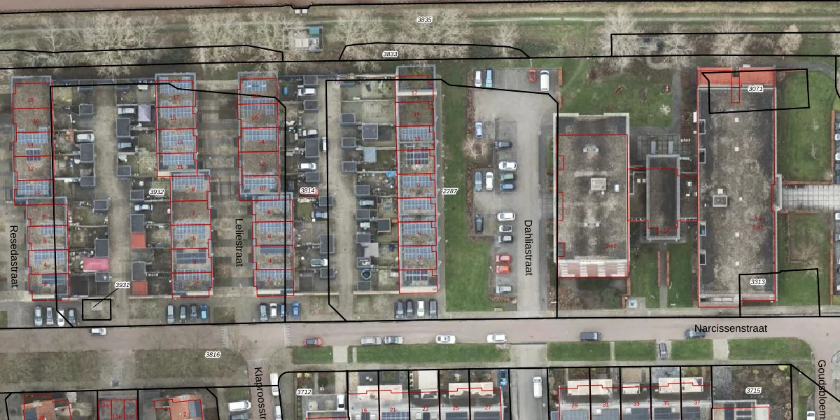 Het perceel waarop Dahliastraat 7 staat heeft een oppervlakte van 3020 m². Dit is een zeer groot perceel. De perceeloppervlakte wordt geregistreerd door het Kadaster. Gedetailleerde informatie over de maten van dit perceel kunt u vinden in het rapport Kadastrale kaart met maatvoering van Dahliastraat 7.