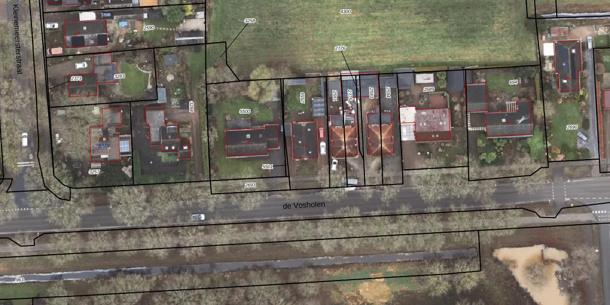 Het perceel waarop de Vosholen 21 staat heeft een oppervlakte van 495 m². Dit is een groot perceel. De perceeloppervlakte wordt geregistreerd door het Kadaster. Gedetailleerde informatie over de maten van dit perceel kunt u vinden in het rapport Kadastrale kaart met maatvoering van de Vosholen 21.