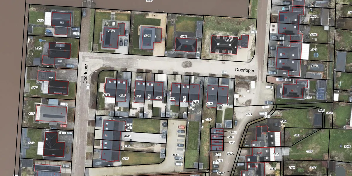 Het perceel waarop Doorloper 20 staat heeft een oppervlakte van 188 m². Dit is een middelgroot perceel. De perceeloppervlakte wordt geregistreerd door het Kadaster. Gedetailleerde informatie over de maten van dit perceel kunt u vinden in het rapport Kadastrale kaart met maatvoering van Doorloper 20.