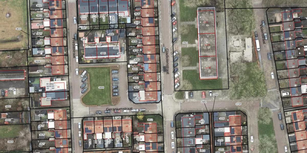 Het perceel waarop Gladiolenstraat 18 staat heeft een oppervlakte van 128 m². Dit is een middelgroot perceel. De perceeloppervlakte wordt geregistreerd door het Kadaster. Gedetailleerde informatie over de maten van dit perceel kunt u vinden in het rapport Kadastrale kaart met maatvoering van Gladiolenstraat 18.