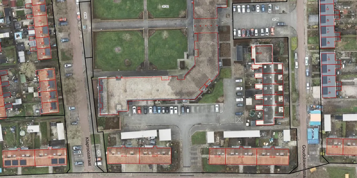 Het perceel waarop Klaproosstraat 65 staat heeft een oppervlakte van 1,5 ha. Dit is een zeer groot perceel. De perceeloppervlakte wordt geregistreerd door het Kadaster. Gedetailleerde informatie over de maten van dit perceel kunt u vinden in het rapport Kadastrale kaart met maatvoering van Klaproosstraat 65.