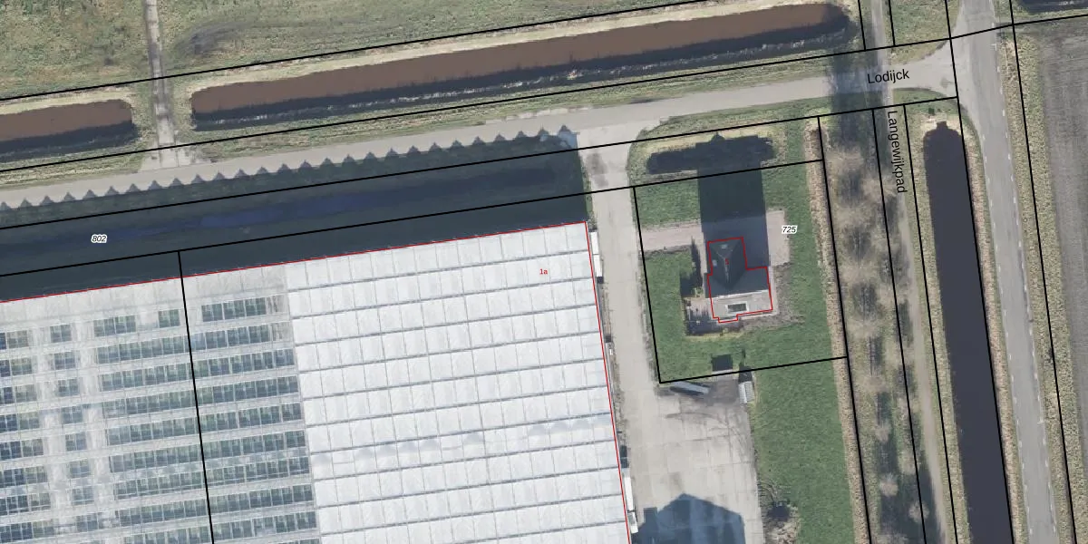 Het perceel waarop Lodijck 1-a staat heeft een oppervlakte van 2,2 ha. Dit is een zeer groot perceel. De perceeloppervlakte wordt geregistreerd door het Kadaster. Gedetailleerde informatie over de maten van dit perceel kunt u vinden in het rapport Kadastrale kaart met maatvoering van Lodijck 1-a.