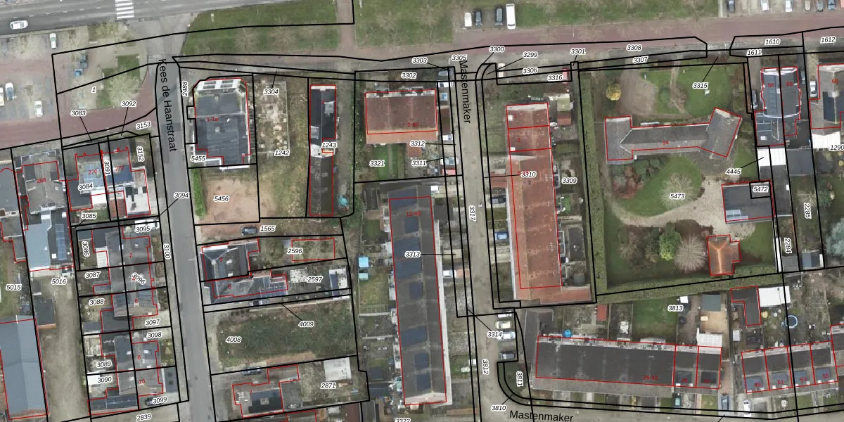 Het perceel waarop Mastenmaker 12 staat heeft een oppervlakte van 2496 m². Dit is een zeer groot perceel. De perceeloppervlakte wordt geregistreerd door het Kadaster. Gedetailleerde informatie over de maten van dit perceel kunt u vinden in het rapport Kadastrale kaart met maatvoering van Mastenmaker 12.
