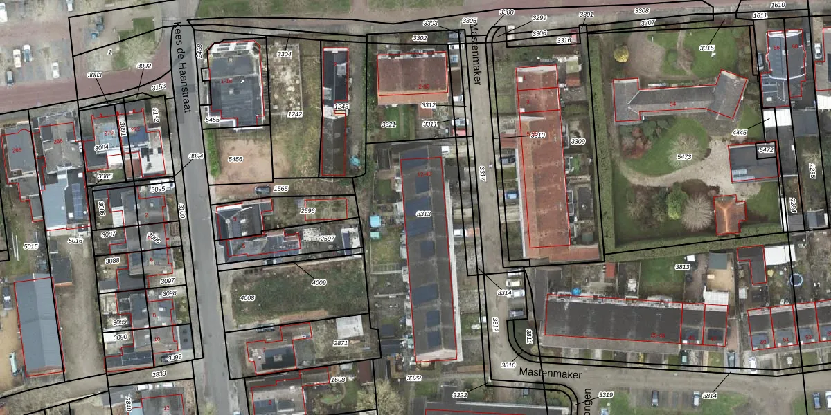 Het perceel waarop Mastenmaker 18 staat heeft een oppervlakte van 2496 m². Dit is een zeer groot perceel. De perceeloppervlakte wordt geregistreerd door het Kadaster. Gedetailleerde informatie over de maten van dit perceel kunt u vinden in het rapport Kadastrale kaart met maatvoering van Mastenmaker 18.