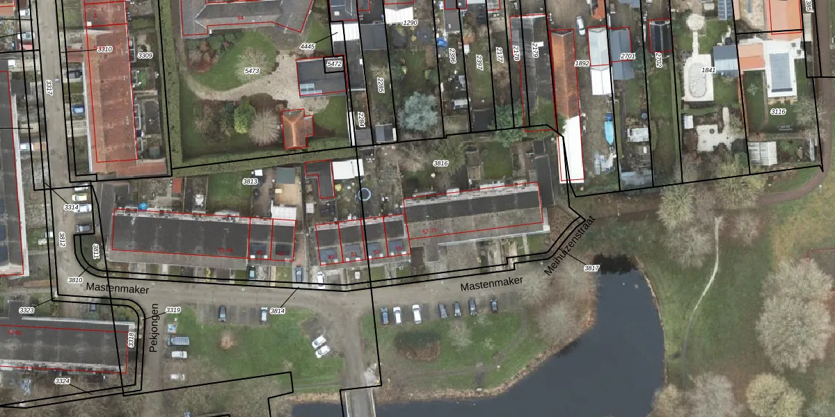 Het perceel waarop Mastenmaker 59 staat heeft een oppervlakte van 1550 m². Dit is een zeer groot perceel. De perceeloppervlakte wordt geregistreerd door het Kadaster. Gedetailleerde informatie over de maten van dit perceel kunt u vinden in het rapport Kadastrale kaart met maatvoering van Mastenmaker 59.