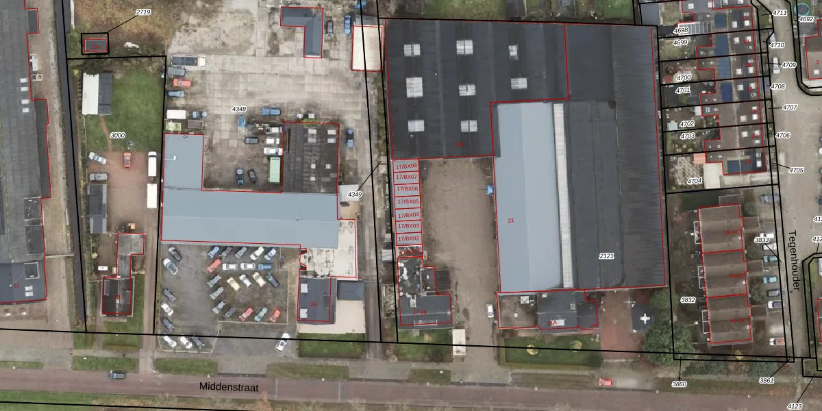 Het perceel waarop Middenstraat 17-BX05 staat heeft een oppervlakte van 5320 m². Dit is een zeer groot perceel. De perceeloppervlakte wordt geregistreerd door het Kadaster. Gedetailleerde informatie over de maten van dit perceel kunt u vinden in het rapport Kadastrale kaart met maatvoering van Middenstraat 17-BX05.