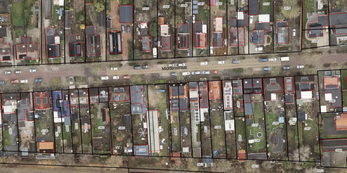 Het perceel waarop Middenstraat 92 staat heeft een oppervlakte van 243 m². Dit is een middelgroot perceel. De perceeloppervlakte wordt geregistreerd door het Kadaster. Gedetailleerde informatie over de maten van dit perceel kunt u vinden in het rapport Kadastrale kaart met maatvoering van Middenstraat 92.