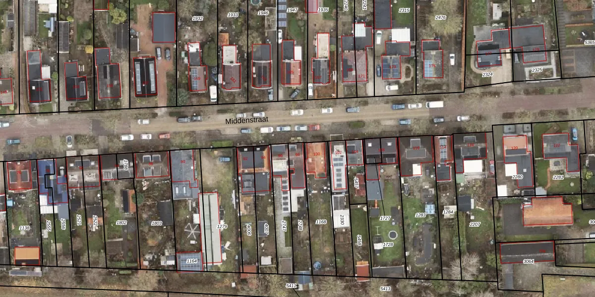 Het perceel waarop Middenstraat 98 staat heeft een oppervlakte van 257 m². Dit is een middelgroot perceel. De perceeloppervlakte wordt geregistreerd door het Kadaster. Gedetailleerde informatie over de maten van dit perceel kunt u vinden in het rapport Kadastrale kaart met maatvoering van Middenstraat 98.