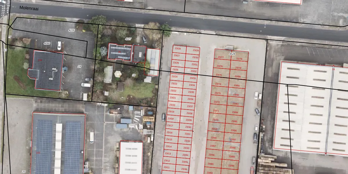 Molenraai 23-23 is gelegen op kadastraal perceel SPM00L21. Deze kadastrale aanduiding is uniek en wordt gebruikt door het Kadaster om eigendomsrechten en andere zakelijke rechten vast te leggen. Het perceel maakt onderdeel uit van de kadastrale gemeente Sappemeer.