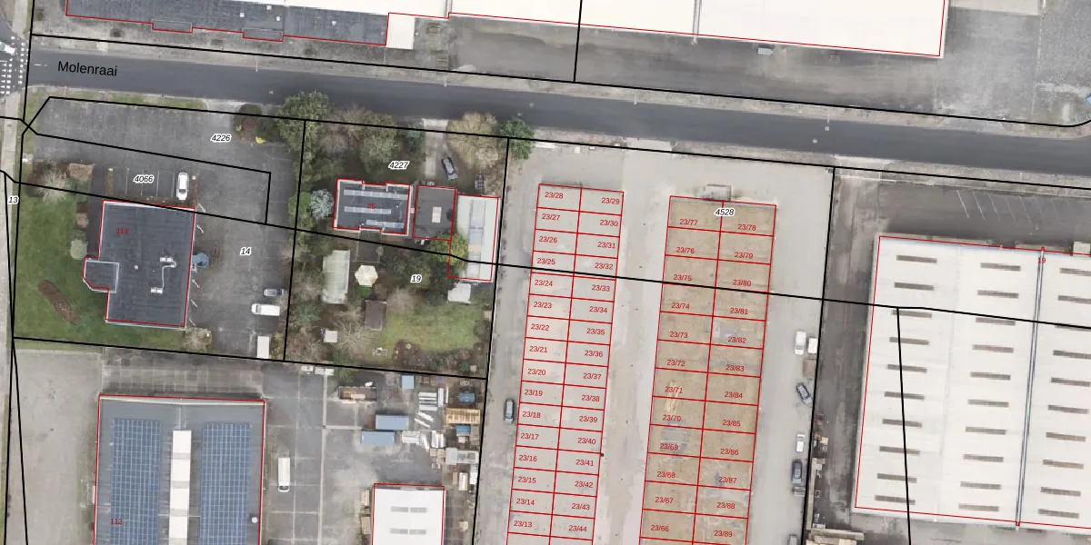 Het perceel waarop Molenraai 23-25 staat heeft een oppervlakte van 6456 m². Dit is een zeer groot perceel. De perceeloppervlakte wordt geregistreerd door het Kadaster. Gedetailleerde informatie over de maten van dit perceel kunt u vinden in het rapport Kadastrale kaart met maatvoering van Molenraai 23-25.