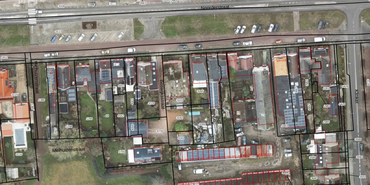 Het perceel waarop Noorderstraat 106 staat heeft een oppervlakte van 381 m². Dit is een groot perceel. De perceeloppervlakte wordt geregistreerd door het Kadaster. Gedetailleerde informatie over de maten van dit perceel kunt u vinden in het rapport Kadastrale kaart met maatvoering van Noorderstraat 106.