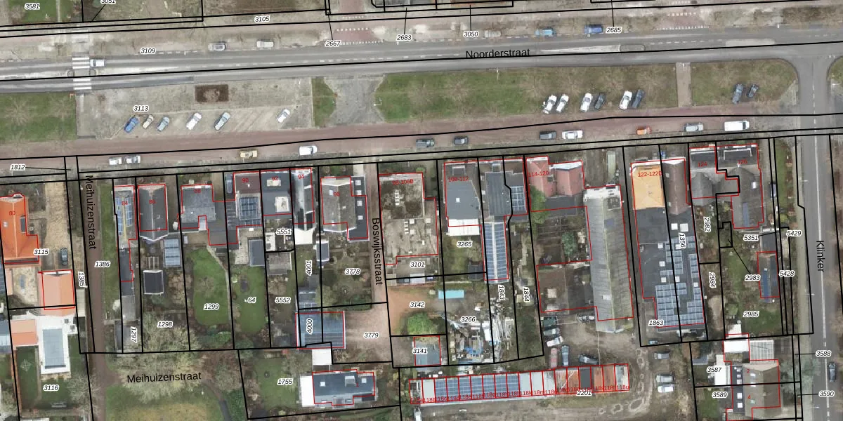 Het perceel waarop Noorderstraat 106-B staat heeft een oppervlakte van 381 m². Dit is een groot perceel. De perceeloppervlakte wordt geregistreerd door het Kadaster. Gedetailleerde informatie over de maten van dit perceel kunt u vinden in het rapport Kadastrale kaart met maatvoering van Noorderstraat 106-B.