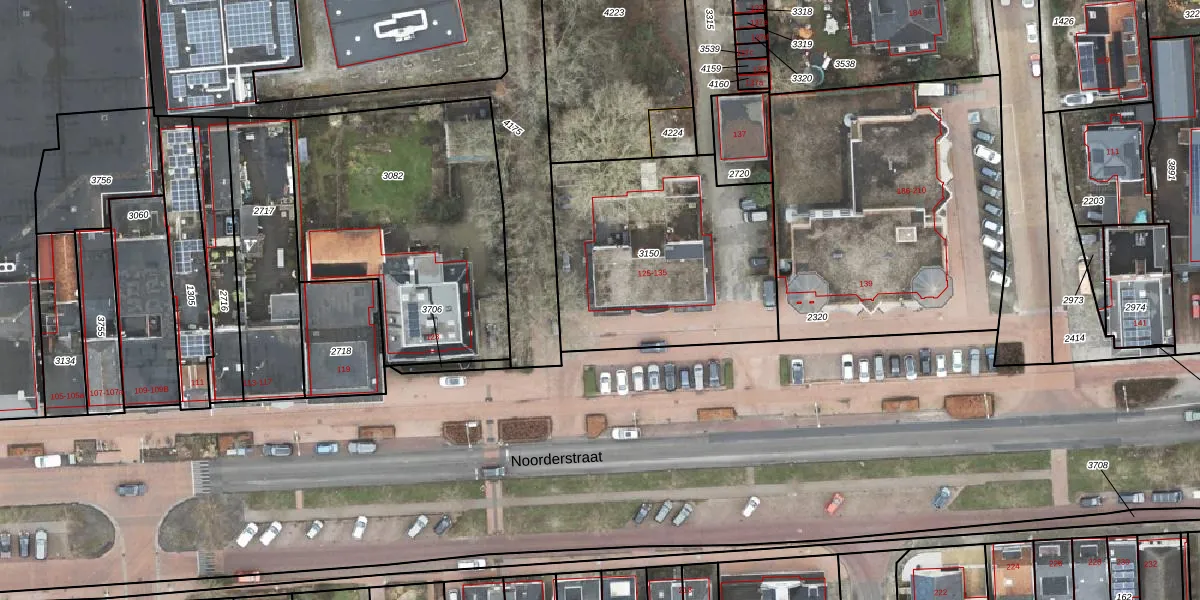 Het perceel waarop Noorderstraat 125 staat heeft een oppervlakte van 1098 m². Dit is een zeer groot perceel. De perceeloppervlakte wordt geregistreerd door het Kadaster. Gedetailleerde informatie over de maten van dit perceel kunt u vinden in het rapport Kadastrale kaart met maatvoering van Noorderstraat 125.
