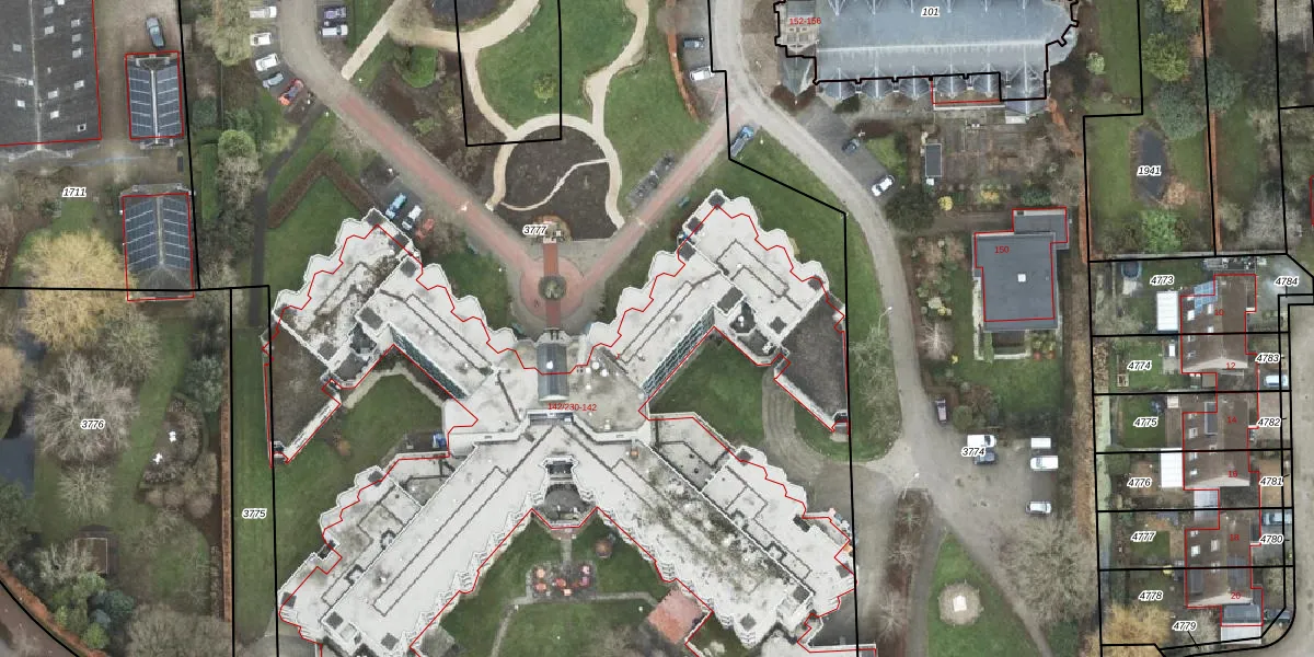 Het perceel waarop Noorderstraat 142-111 staat heeft een oppervlakte van 1,1 ha. Dit is een zeer groot perceel. De perceeloppervlakte wordt geregistreerd door het Kadaster. Gedetailleerde informatie over de maten van dit perceel kunt u vinden in het rapport Kadastrale kaart met maatvoering van Noorderstraat 142-111.