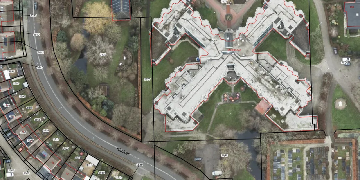 Het perceel waarop Noorderstraat 142-141 staat heeft een oppervlakte van 1,1 ha. Dit is een zeer groot perceel. De perceeloppervlakte wordt geregistreerd door het Kadaster. Gedetailleerde informatie over de maten van dit perceel kunt u vinden in het rapport Kadastrale kaart met maatvoering van Noorderstraat 142-141.
