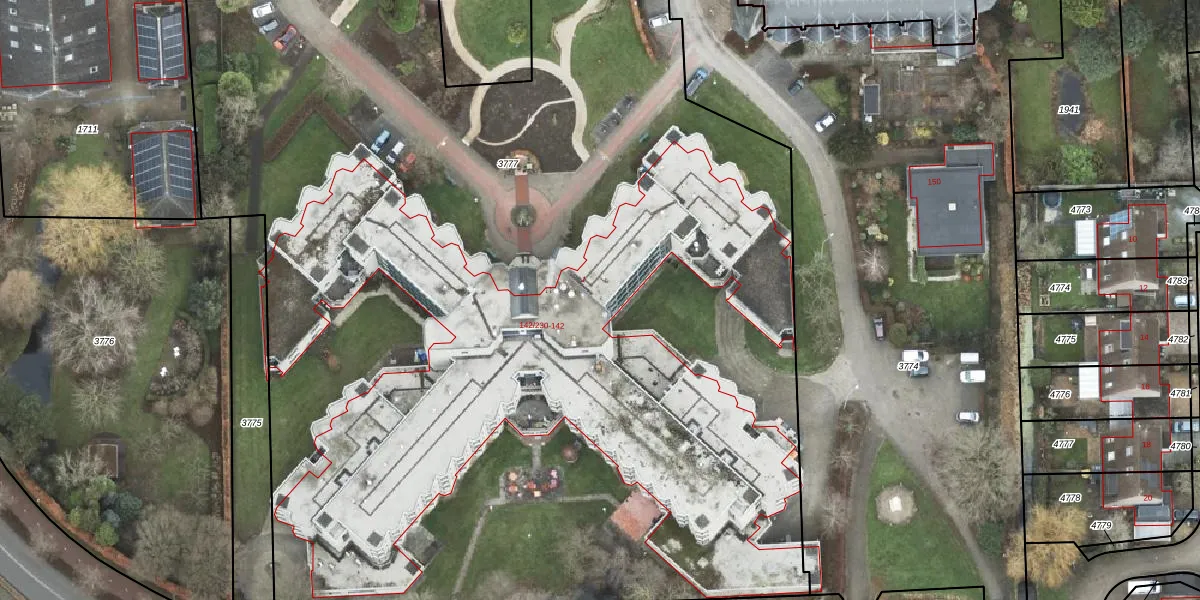 Het perceel waarop Noorderstraat 142-210 staat heeft een oppervlakte van 1,1 ha. Dit is een zeer groot perceel. De perceeloppervlakte wordt geregistreerd door het Kadaster. Gedetailleerde informatie over de maten van dit perceel kunt u vinden in het rapport Kadastrale kaart met maatvoering van Noorderstraat 142-210.