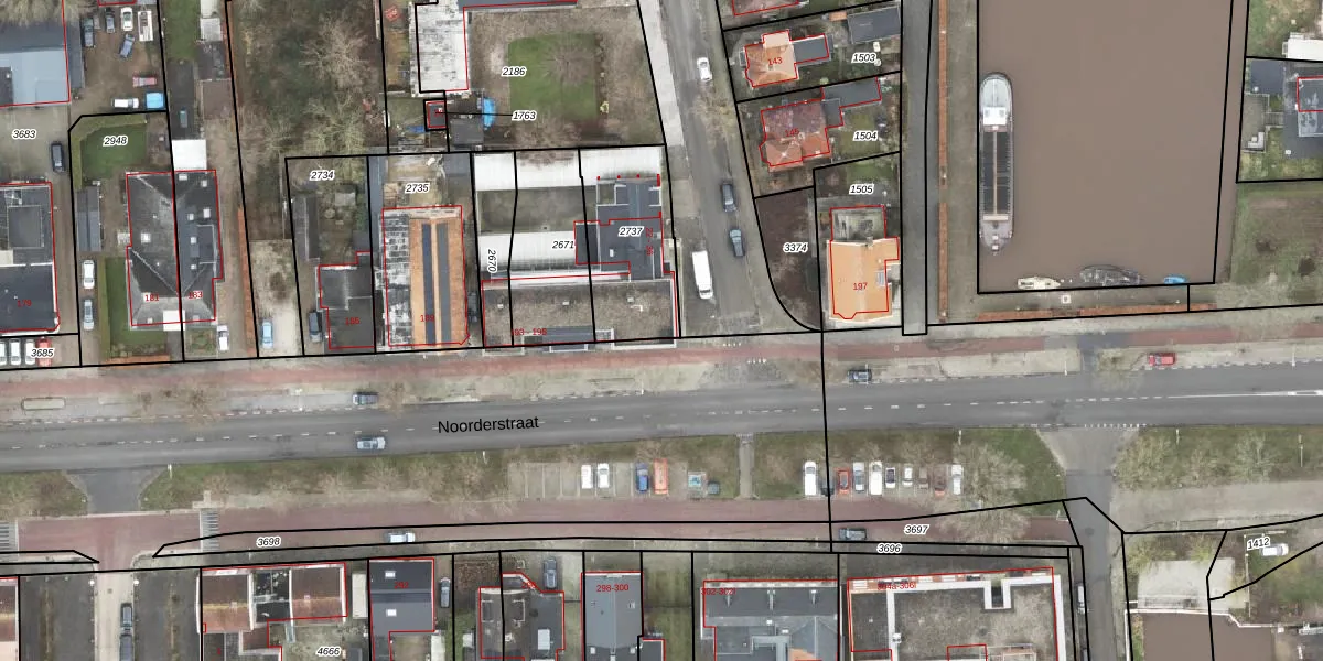 Het perceel waarop Noorderstraat 195-A staat heeft een oppervlakte van 371 m². Dit is een groot perceel. De perceeloppervlakte wordt geregistreerd door het Kadaster. Gedetailleerde informatie over de maten van dit perceel kunt u vinden in het rapport Kadastrale kaart met maatvoering van Noorderstraat 195-A.