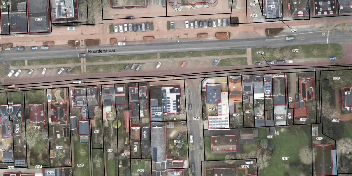 Het perceel waarop Noorderstraat 220 staat heeft een oppervlakte van 485 m². Dit is een groot perceel. De perceeloppervlakte wordt geregistreerd door het Kadaster. Gedetailleerde informatie over de maten van dit perceel kunt u vinden in het rapport Kadastrale kaart met maatvoering van Noorderstraat 220.