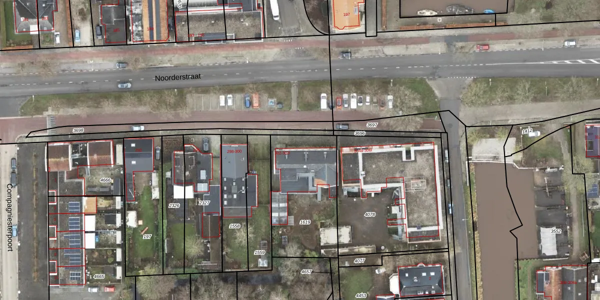 Het perceel waarop Noorderstraat 302-b staat heeft een oppervlakte van 880 m². Dit is een groot perceel. De perceeloppervlakte wordt geregistreerd door het Kadaster. Gedetailleerde informatie over de maten van dit perceel kunt u vinden in het rapport Kadastrale kaart met maatvoering van Noorderstraat 302-b.