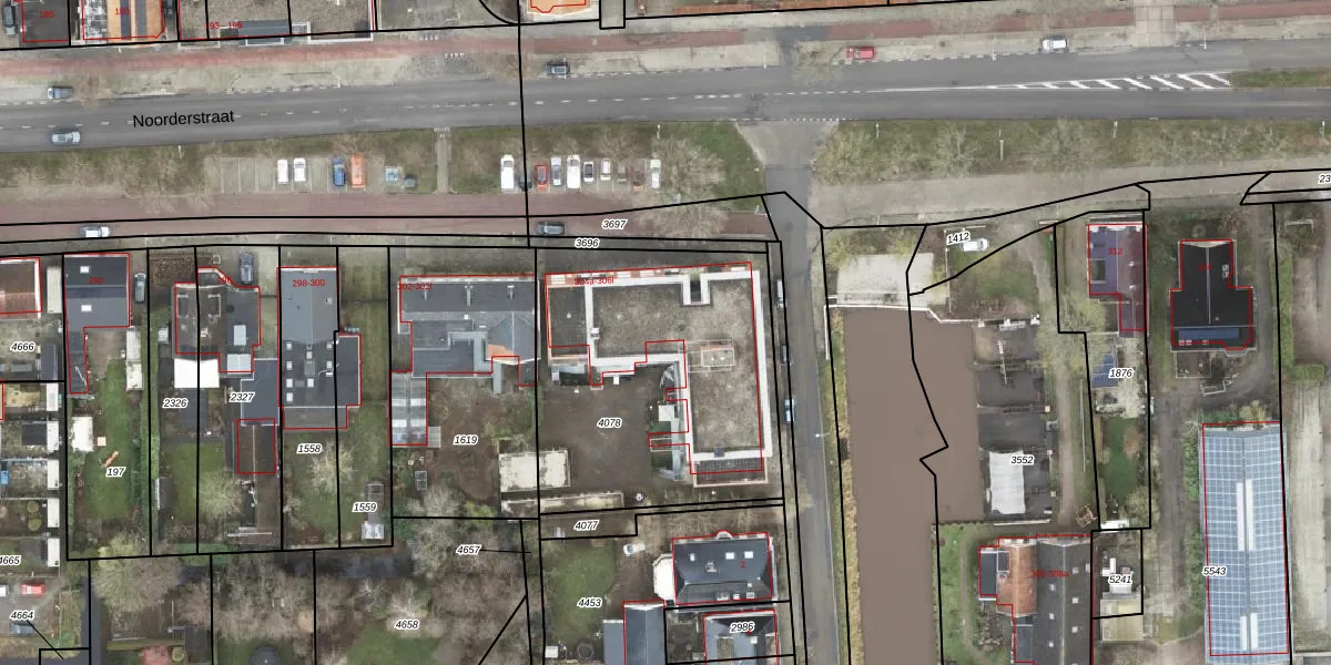 Het perceel waarop Noorderstraat 306-k staat heeft een oppervlakte van 1352 m². Dit is een zeer groot perceel. De perceeloppervlakte wordt geregistreerd door het Kadaster. Gedetailleerde informatie over de maten van dit perceel kunt u vinden in het rapport Kadastrale kaart met maatvoering van Noorderstraat 306-k.