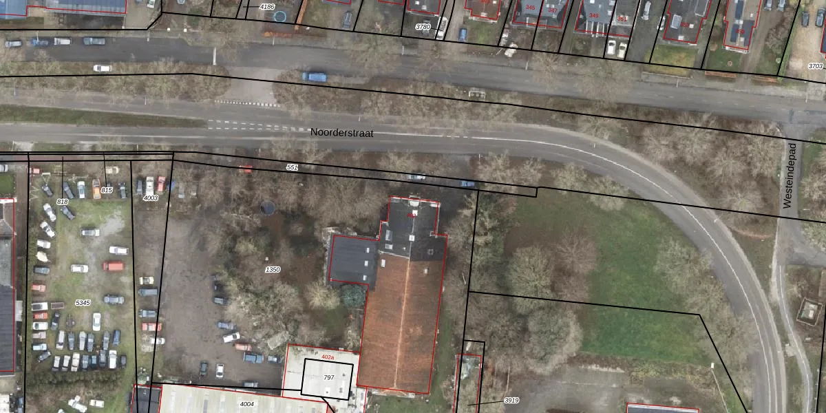 Het perceel waarop Noorderstraat 402 staat heeft een oppervlakte van 4116 m². Dit is een zeer groot perceel. De perceeloppervlakte wordt geregistreerd door het Kadaster. Gedetailleerde informatie over de maten van dit perceel kunt u vinden in het rapport Kadastrale kaart met maatvoering van Noorderstraat 402.