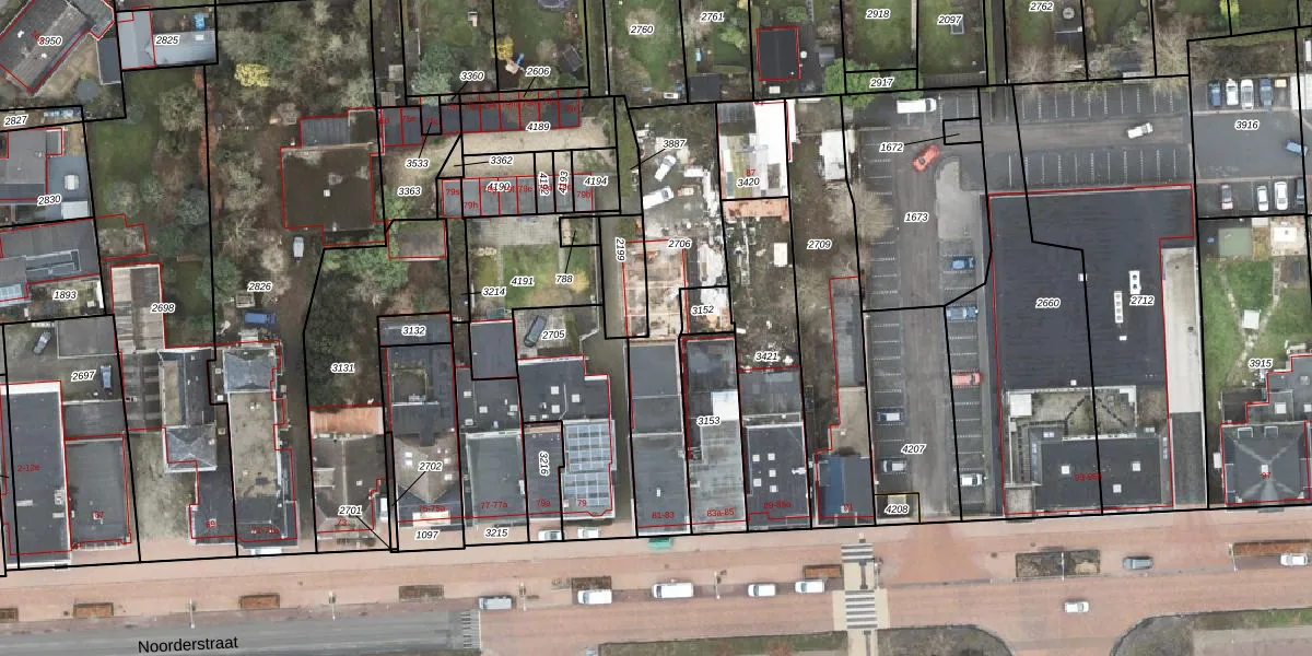 Het perceel waarop Noorderstraat 81-H staat heeft een oppervlakte van 666 m². Dit is een groot perceel. De perceeloppervlakte wordt geregistreerd door het Kadaster. Gedetailleerde informatie over de maten van dit perceel kunt u vinden in het rapport Kadastrale kaart met maatvoering van Noorderstraat 81-H.