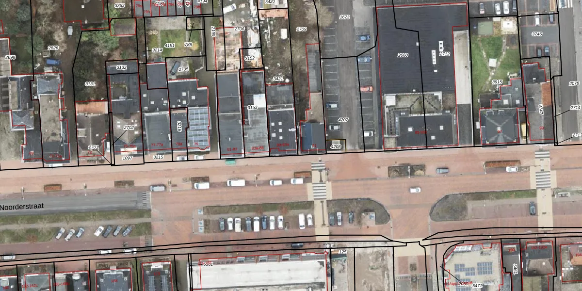 Het perceel waarop Noorderstraat 89 staat heeft een oppervlakte van 494 m². Dit is een groot perceel. De perceeloppervlakte wordt geregistreerd door het Kadaster. Gedetailleerde informatie over de maten van dit perceel kunt u vinden in het rapport Kadastrale kaart met maatvoering van Noorderstraat 89.