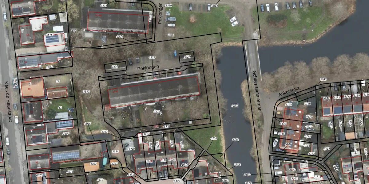 Het perceel waarop Pekjongen 18 staat heeft een oppervlakte van 1563 m². Dit is een zeer groot perceel. De perceeloppervlakte wordt geregistreerd door het Kadaster. Gedetailleerde informatie over de maten van dit perceel kunt u vinden in het rapport Kadastrale kaart met maatvoering van Pekjongen 18.