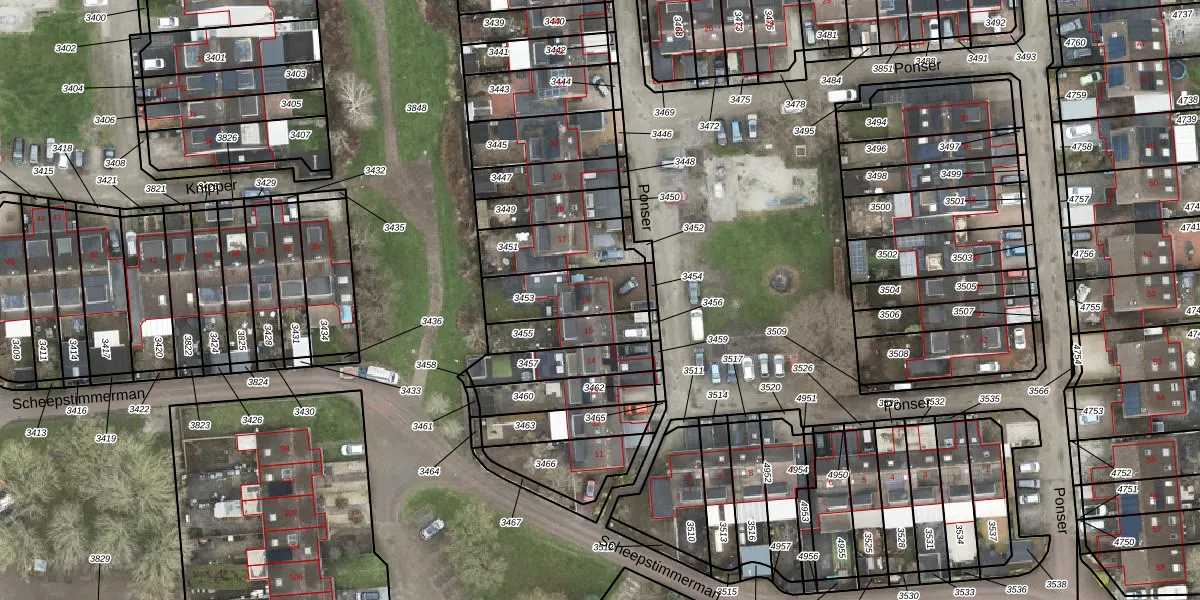 Het perceel waarop Ponser 16 staat heeft een oppervlakte van 215 m². Dit is een middelgroot perceel. De perceeloppervlakte wordt geregistreerd door het Kadaster. Gedetailleerde informatie over de maten van dit perceel kunt u vinden in het rapport Kadastrale kaart met maatvoering van Ponser 16.
