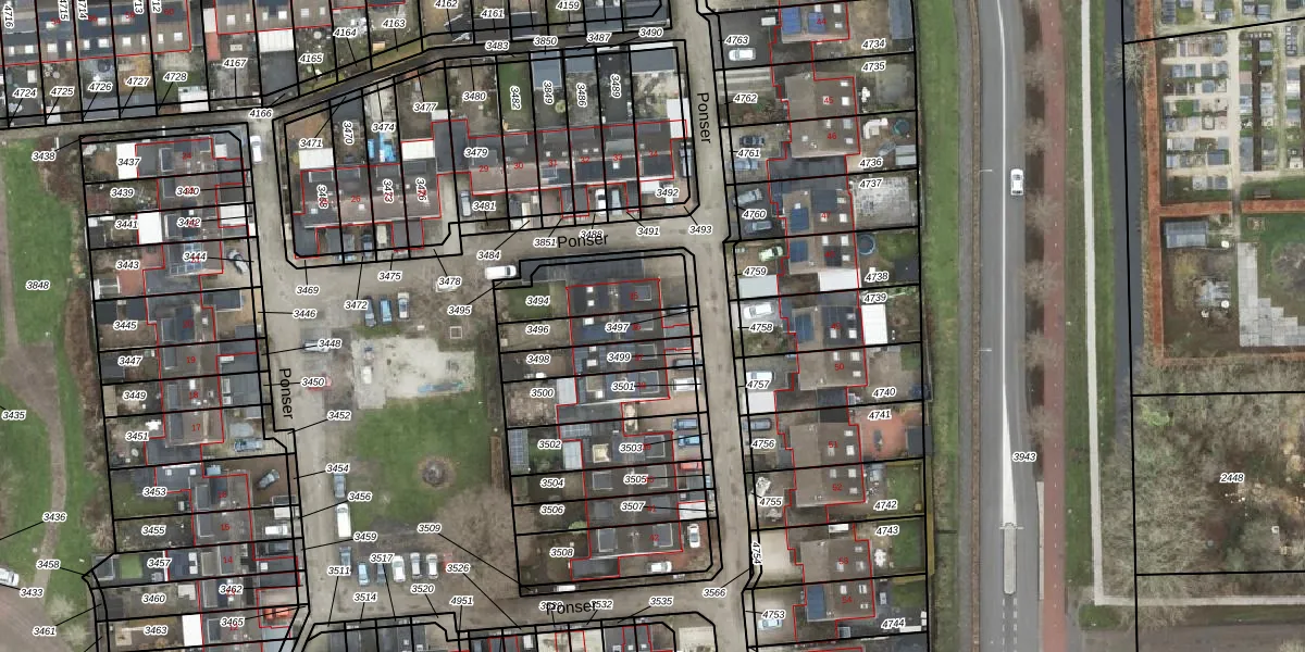Gebruik de zoekbalk of klik op een perceel voor informatie over de adressen binnen dit perceel.