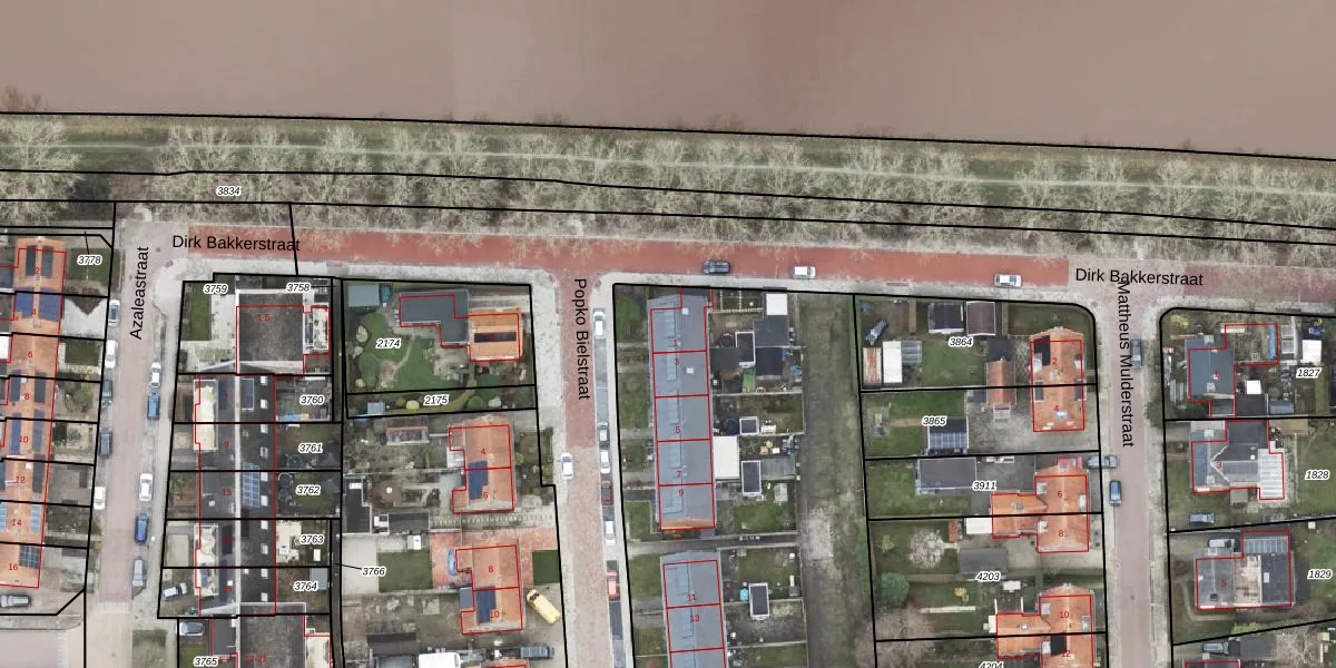 Het perceel waarop Popko Bielstraat 1 staat heeft een oppervlakte van 3999 m². Dit is een zeer groot perceel. De perceeloppervlakte wordt geregistreerd door het Kadaster. Gedetailleerde informatie over de maten van dit perceel kunt u vinden in het rapport Kadastrale kaart met maatvoering van Popko Bielstraat 1.