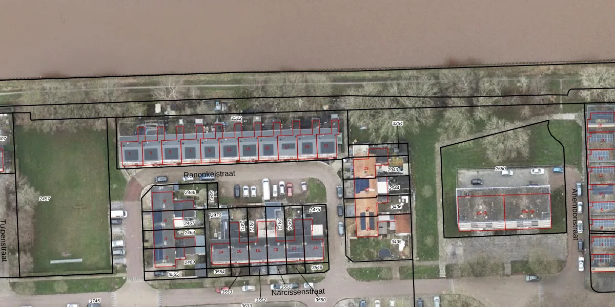 Het perceel waarop Ranonkelstraat 19 staat heeft een oppervlakte van 1230 m². Dit is een zeer groot perceel. De perceeloppervlakte wordt geregistreerd door het Kadaster. Gedetailleerde informatie over de maten van dit perceel kunt u vinden in het rapport Kadastrale kaart met maatvoering van Ranonkelstraat 19.