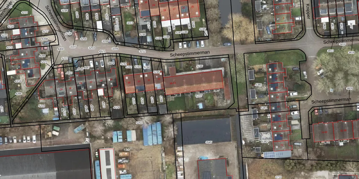 Scheepstimmerman 40 is gelegen op kadastraal perceel SPM00G5197. Deze kadastrale aanduiding is uniek en wordt gebruikt door het Kadaster om eigendomsrechten en andere zakelijke rechten vast te leggen. Het perceel maakt onderdeel uit van de kadastrale gemeente Sappemeer.