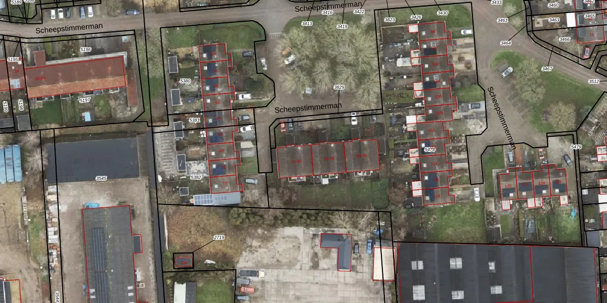 Het perceel waarop Scheepstimmerman 74 staat heeft een oppervlakte van 4602 m². Dit is een zeer groot perceel. De perceeloppervlakte wordt geregistreerd door het Kadaster. Gedetailleerde informatie over de maten van dit perceel kunt u vinden in het rapport Kadastrale kaart met maatvoering van Scheepstimmerman 74.