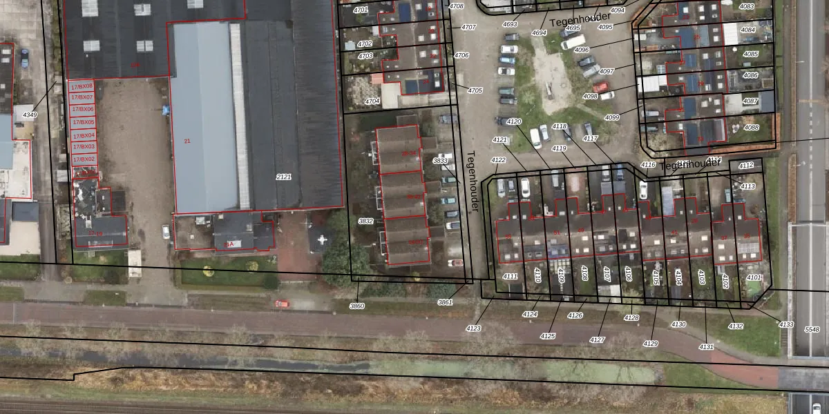 Het perceel waarop Tegenhouder 36 staat heeft een oppervlakte van 1073 m². Dit is een zeer groot perceel. De perceeloppervlakte wordt geregistreerd door het Kadaster. Gedetailleerde informatie over de maten van dit perceel kunt u vinden in het rapport Kadastrale kaart met maatvoering van Tegenhouder 36.