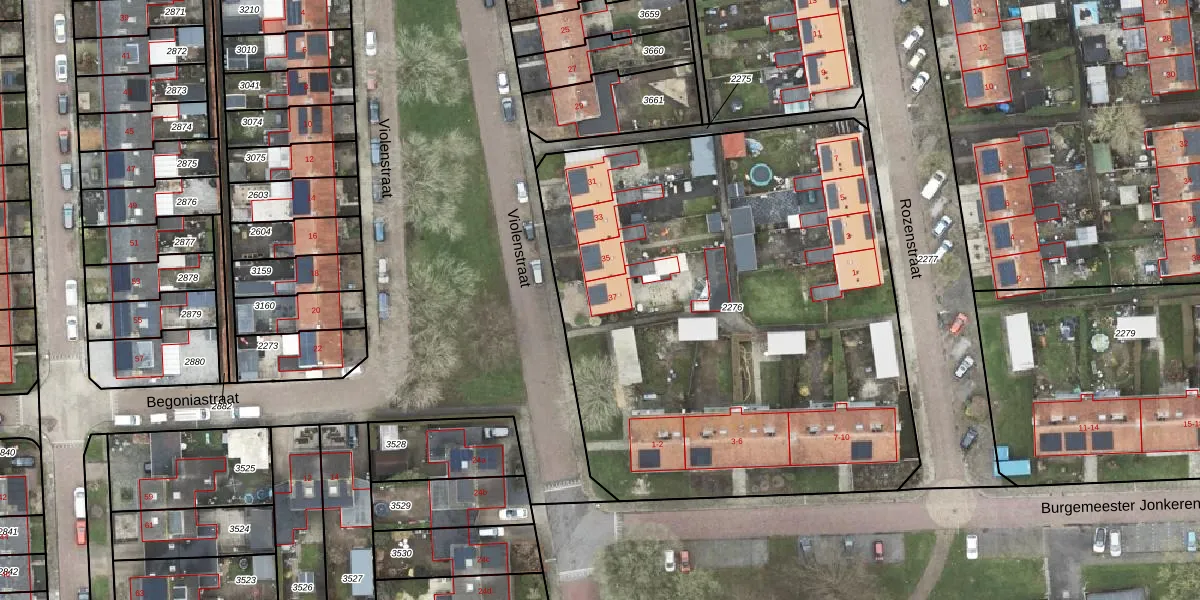 Het perceel waarop Violenstraat 37 staat heeft een oppervlakte van 3305 m². Dit is een zeer groot perceel. De perceeloppervlakte wordt geregistreerd door het Kadaster. Gedetailleerde informatie over de maten van dit perceel kunt u vinden in het rapport Kadastrale kaart met maatvoering van Violenstraat 37.