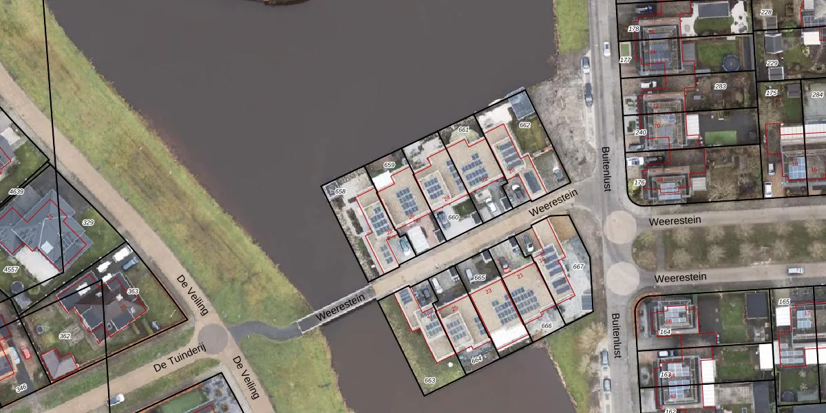 Gebruik de zoekbalk of klik op een perceel voor informatie over de adressen binnen dit perceel.