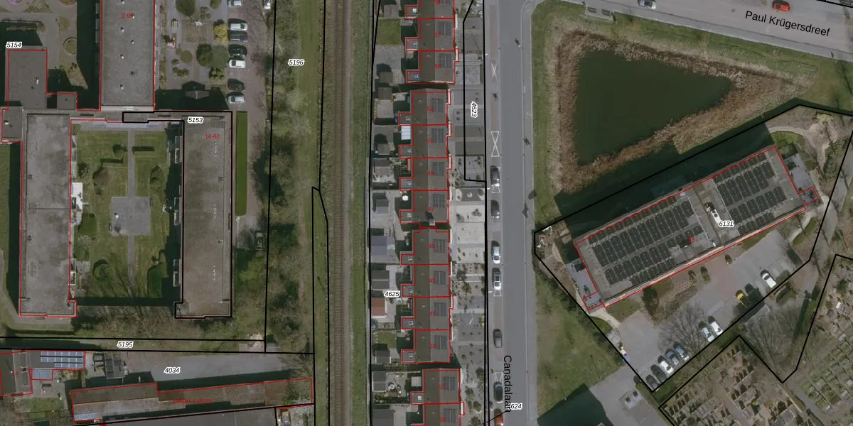 Het perceel waarop Canadalaan 47 staat heeft een oppervlakte van 3320 m². Dit is een zeer groot perceel. De perceeloppervlakte wordt geregistreerd door het Kadaster. Gedetailleerde informatie over de maten van dit perceel kunt u vinden in het rapport Kadastrale kaart met maatvoering van Canadalaan 47.
