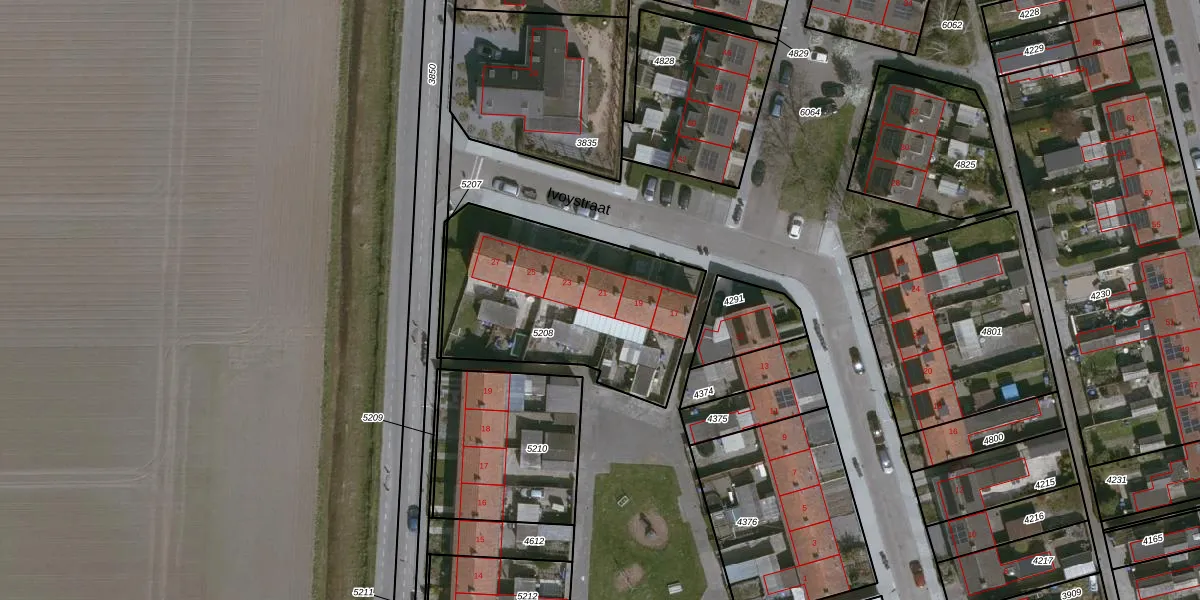 Ivoystraat 21 is gelegen op kadastraal perceel SAS00C5208. Deze kadastrale aanduiding is uniek en wordt gebruikt door het Kadaster om eigendomsrechten en andere zakelijke rechten vast te leggen. Het perceel maakt onderdeel uit van de kadastrale gemeente Sas van Gent.