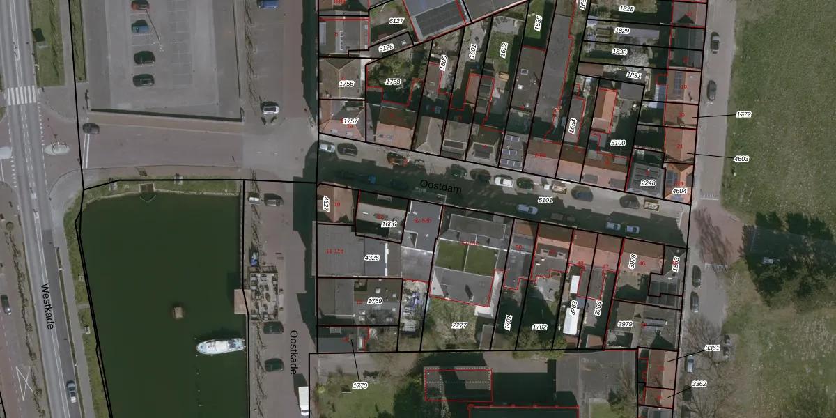 Het perceel waarop Oostdam 52 staat heeft een oppervlakte van 464 m². Dit is een groot perceel. De perceeloppervlakte wordt geregistreerd door het Kadaster. Gedetailleerde informatie over de maten van dit perceel kunt u vinden in het rapport Kadastrale kaart met maatvoering van Oostdam 52.