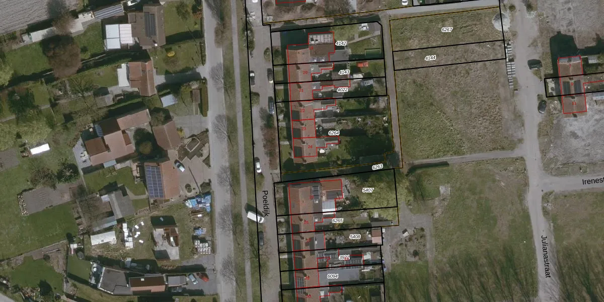 Het perceel waarop Poeldijk 24 staat heeft een oppervlakte van 850 m². Dit is een groot perceel. De perceeloppervlakte wordt geregistreerd door het Kadaster. Gedetailleerde informatie over de maten van dit perceel kunt u vinden in het rapport Kadastrale kaart met maatvoering van Poeldijk 24.