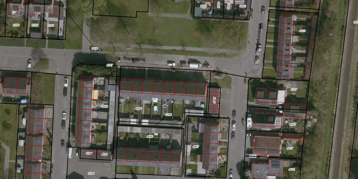 Rapenburg 5 is gelegen op kadastraal perceel SAS00C4466. Deze kadastrale aanduiding is uniek en wordt gebruikt door het Kadaster om eigendomsrechten en andere zakelijke rechten vast te leggen. Het perceel maakt onderdeel uit van de kadastrale gemeente Sas van Gent.