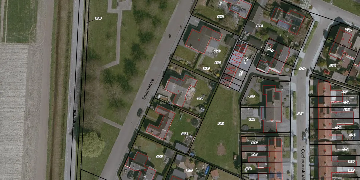 Stuartstraat 4 is gelegen op kadastraal perceel SAS00C3954. Deze kadastrale aanduiding is uniek en wordt gebruikt door het Kadaster om eigendomsrechten en andere zakelijke rechten vast te leggen. Het perceel maakt onderdeel uit van de kadastrale gemeente Sas van Gent.