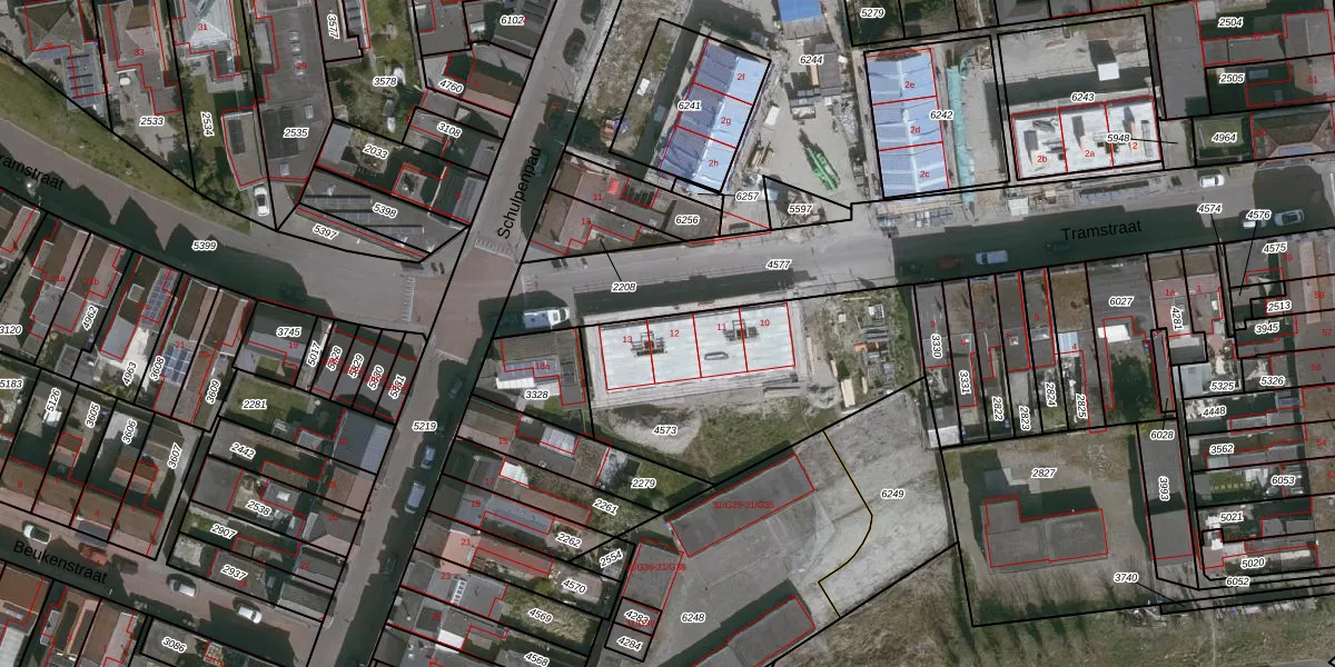 Tramstraat 12 is gelegen op kadastraal perceel SAS00C4573. Deze kadastrale aanduiding is uniek en wordt gebruikt door het Kadaster om eigendomsrechten en andere zakelijke rechten vast te leggen. Het perceel maakt onderdeel uit van de kadastrale gemeente Sas van Gent.