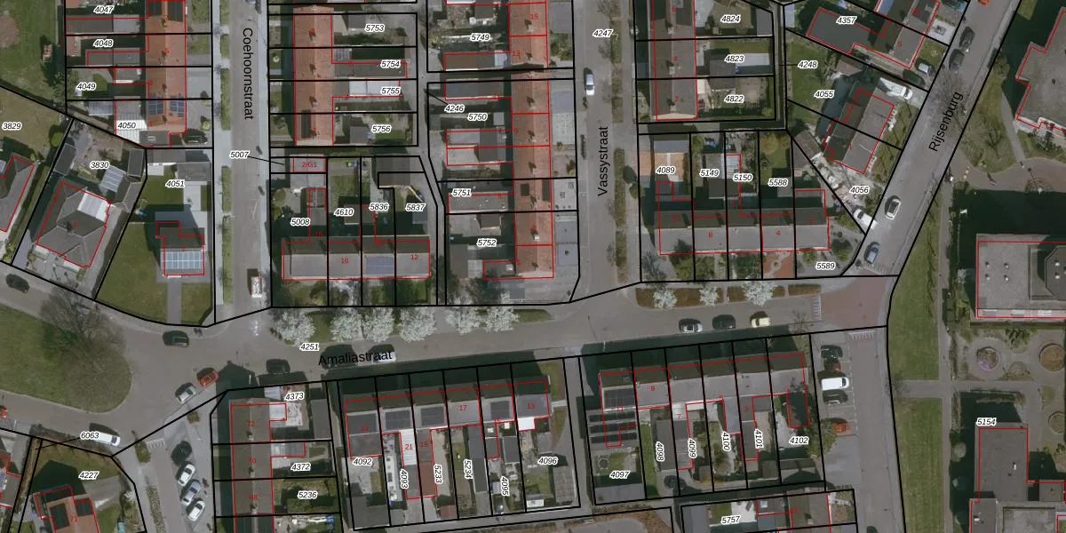 Het perceel waarop Vassystraat 1 staat heeft een oppervlakte van 429 m². Dit is een groot perceel. De perceeloppervlakte wordt geregistreerd door het Kadaster. Gedetailleerde informatie over de maten van dit perceel kunt u vinden in het rapport Kadastrale kaart met maatvoering van Vassystraat 1.
