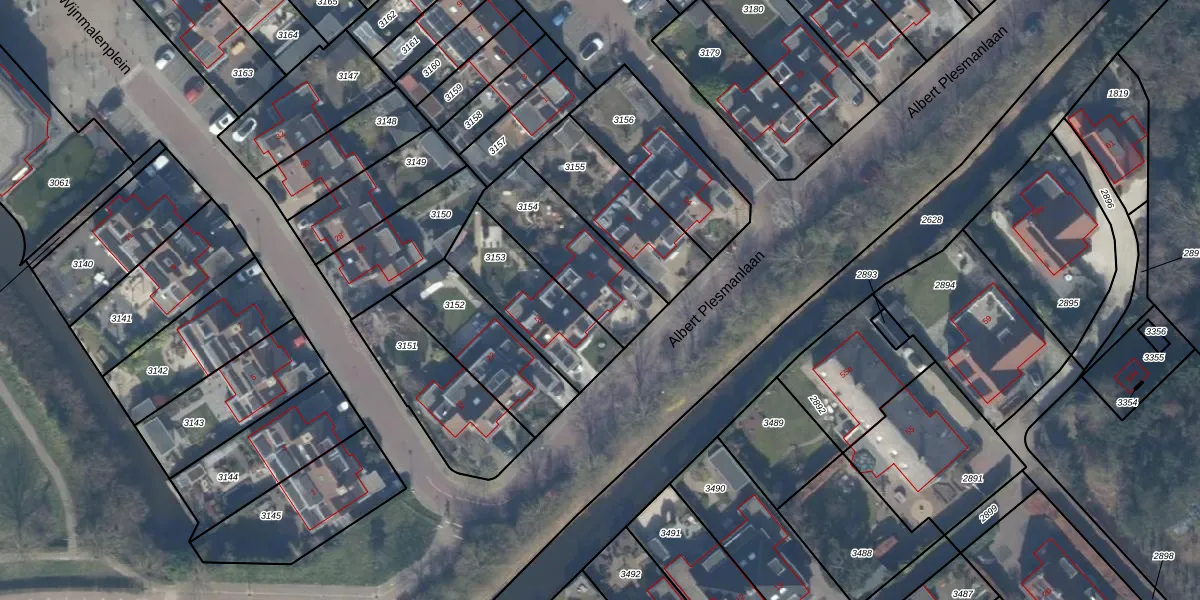 Gebruik de zoekbalk of klik op een perceel voor informatie over de adressen binnen dit perceel.