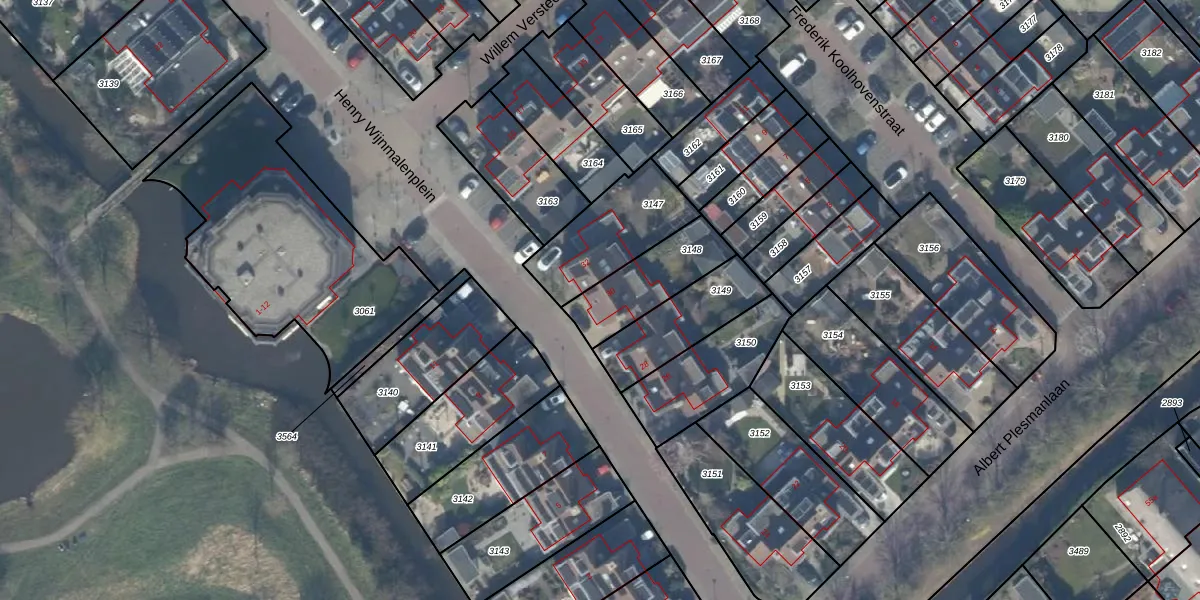 Gebruik de zoekbalk of klik op een perceel voor informatie over de adressen binnen dit perceel.