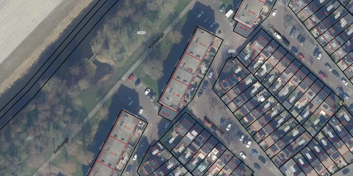 Het perceel waarop Angelenhorst 19-b staat heeft een oppervlakte van 860 m². Dit is een groot perceel. De perceeloppervlakte wordt geregistreerd door het Kadaster. Gedetailleerde informatie over de maten van dit perceel kunt u vinden in het rapport Kadastrale kaart met maatvoering van Angelenhorst 19-b.