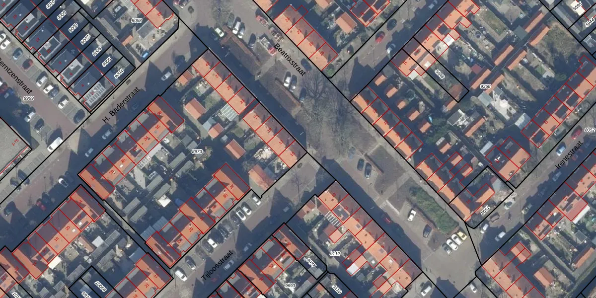 Het perceel waarop Beatrixstraat 15 staat heeft een oppervlakte van 2755 m². Dit is een zeer groot perceel. De perceeloppervlakte wordt geregistreerd door het Kadaster. Gedetailleerde informatie over de maten van dit perceel kunt u vinden in het rapport Kadastrale kaart met maatvoering van Beatrixstraat 15.