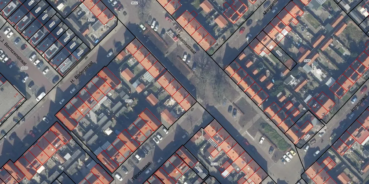 Het perceel waarop Beatrixstraat 17 staat heeft een oppervlakte van 2755 m². Dit is een zeer groot perceel. De perceeloppervlakte wordt geregistreerd door het Kadaster. Gedetailleerde informatie over de maten van dit perceel kunt u vinden in het rapport Kadastrale kaart met maatvoering van Beatrixstraat 17.